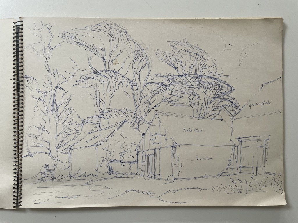 Joyce was an avid amateur geologist and could often be found exploring quarries and rock deposits, tools in hand, as she discovered interesting looking stones and fossils. They often featured in her work, including the family favourite below, from which the main rock depicted has survived and is displayed alongside it (see middle picture).
